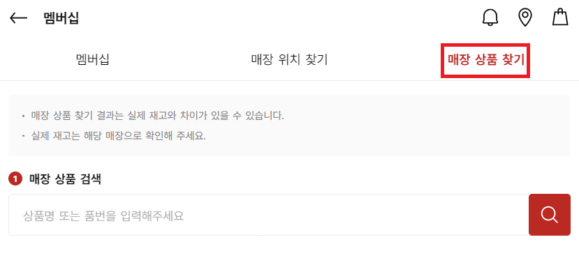 2. 상단 메뉴에서 '매장 상품 찾기'를 클릭합니다.