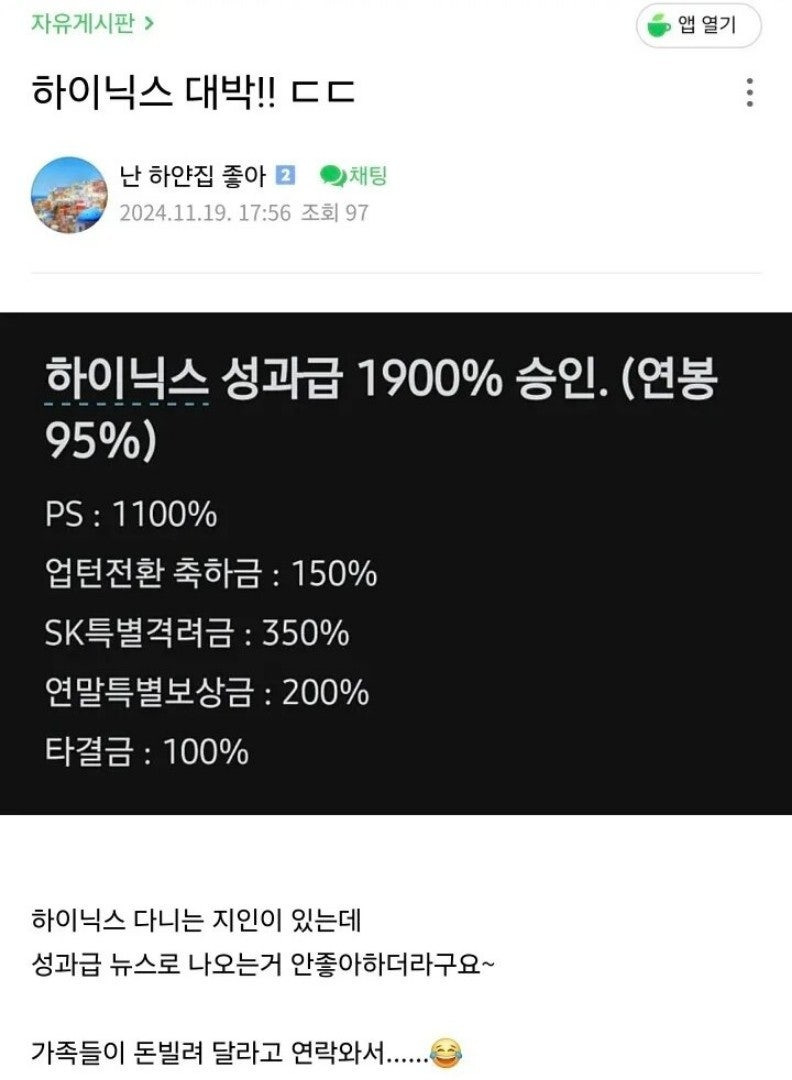 하이닉스의 성과급 제도에 대해서 한번 알아보시죠.